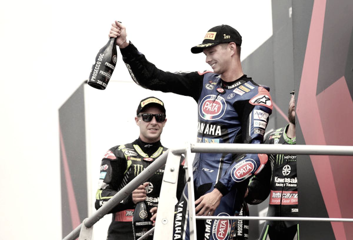 El piloto norirlandés ha conseguido su victoria número 60, siendo así el piloto con más victorias en Superbikes. Junto a él han subido al podio Marco Melandri,